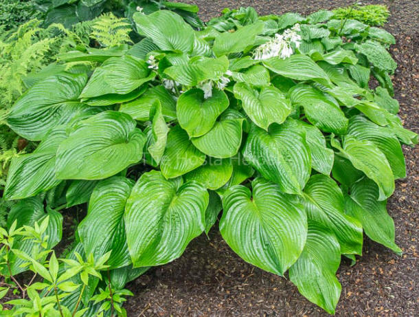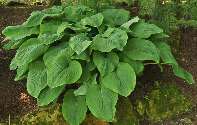 The New Encyclopedia of Hostas by Diana Grenfell (2009) states: "Site in light shade with plenty of moisture to keep the massive leaves turgid as lack of sufficient water can cause wilting. Slow to start but eventually huge...Lovely in a woodland among plants with variegated leaves."