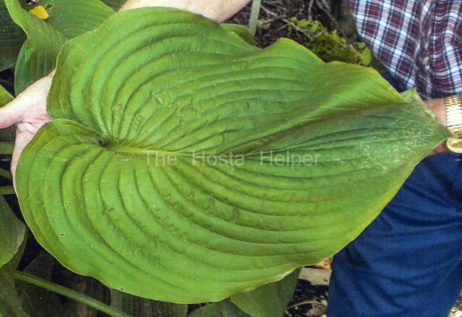 In 1999 (modified in 2005), Dr. Dick and Jane Ward of Ohio registered this hybrid of H. montana macrophylla x H. 'Big John'. This huge plant grows 30 inches tall and spreads 80 inches wide with wavy, slightly corrugated foliage. The broadly ovate leaves are dull on top and bottom. Starting in late June, its near white flowers bloom on scapes up to 38 inches tall.