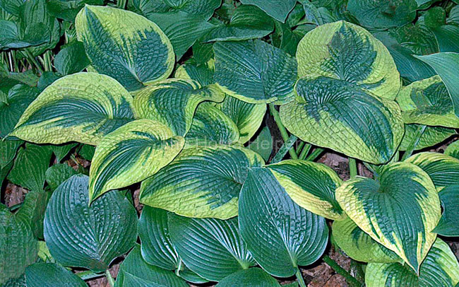 This medium size (17 inches high by 48 inches wide) hosta has gold marginal