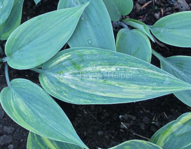 This non-registered cultivar is a hybrid of H. 'Mikawa no Yuki' × H. 'Tsuma Tajima' which was introduced by Jeroen Linneman of the Netherlands in 2016. It is a small size hosta with narrowly ovate, blue-green leaves with yellow streaked variegation.