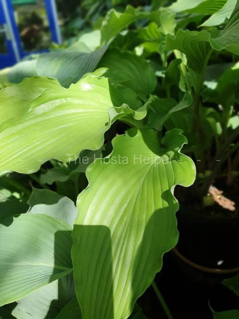 H. 'Valley's Big Freeze'. It is a very large size hosta about 28 inches high by 28 inches wide. The