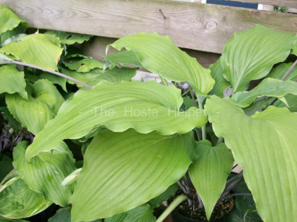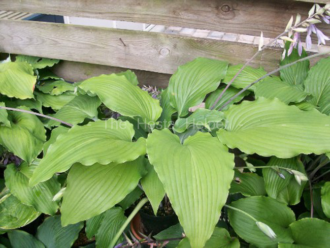 Registered by Jeroen Linneman of the Netherlands in 2010, this cultivar is a seedling of H. 'Mikawa-no-yuki' × H. pycnophylla. It is a fast growing, large size hosta about 22 inches high by 28 inches wide. The broadly ovate, light green foliage is heavily rippled, intensely wavy and slightly shiny on top. Pale purple flowers bloom from mid-August into September followed by viable seeds.