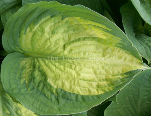 This non-registered cultivar was introduced by Jeroen Linneman of the Netherlands in 2012. It is a medium size seedling of H. 'Sally and Bob' × H. 'Skylight'. The foliage is light blue-green with yellow medial (center) and streaked variegation.