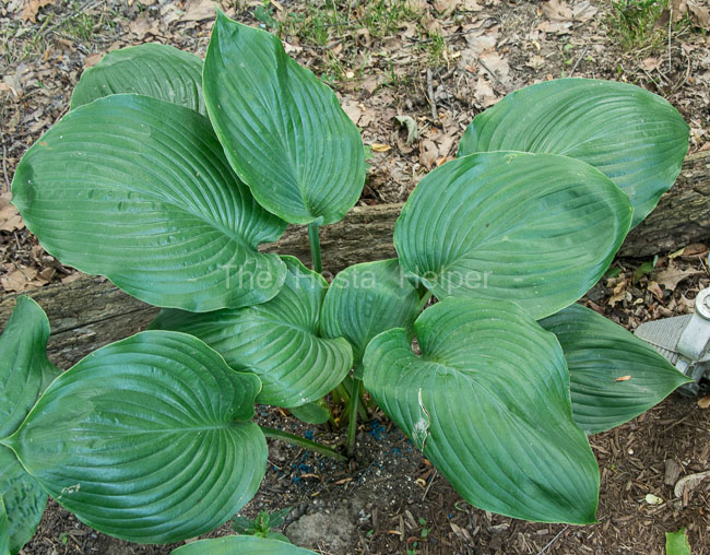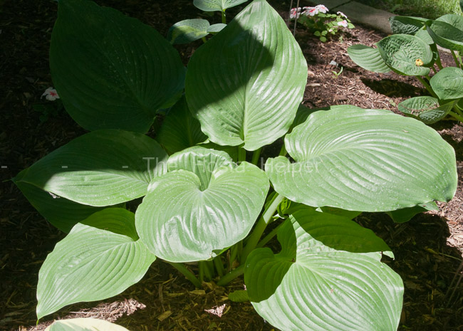 Registered by Walters Gardens, Inc. of Michigan in 2000, this is a sport of H. 'Sum and Substance'. This giant size (29 inches high) mound has shiny, dark green foliage that curls and is somewhat unruly. Pale lavender flowers bloom on 48 inch tall scapes from late July into August.