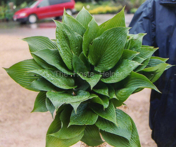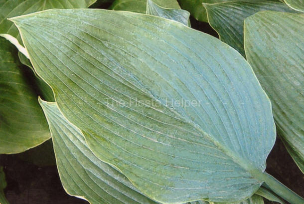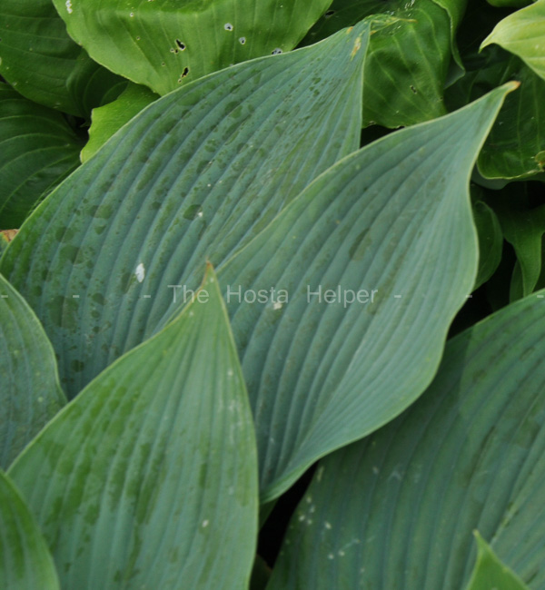 2009. The mound grows into a large size about 23 inches high by 40 inches wide with slightly wavy, ovate, slightly rippled foliage that is dull on top. Its white