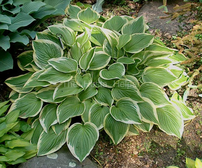self-pollinated seedling of H. 'William Lachman' that grows into a medium size (18 inches high by 48 inches wide) mound with slightly wavy foliage of average
