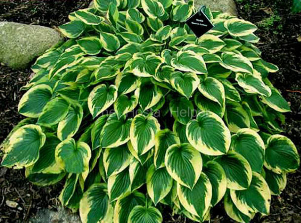 a golden yellow colored marginal variegation. The leaves are lightly corrugated,