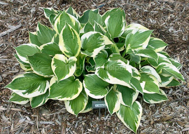 tissue culture sport of H. 'Whirlwind' in 2003. The mound is large size (22 inches high) and the margin variegation