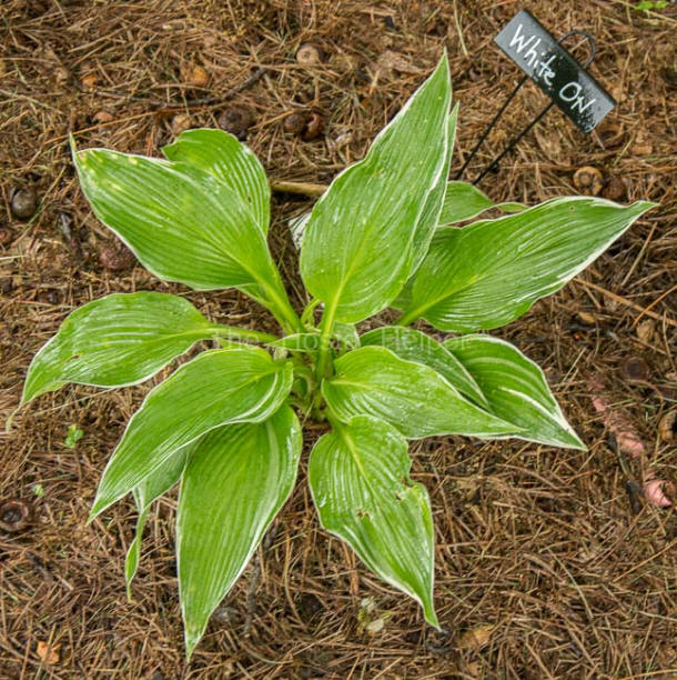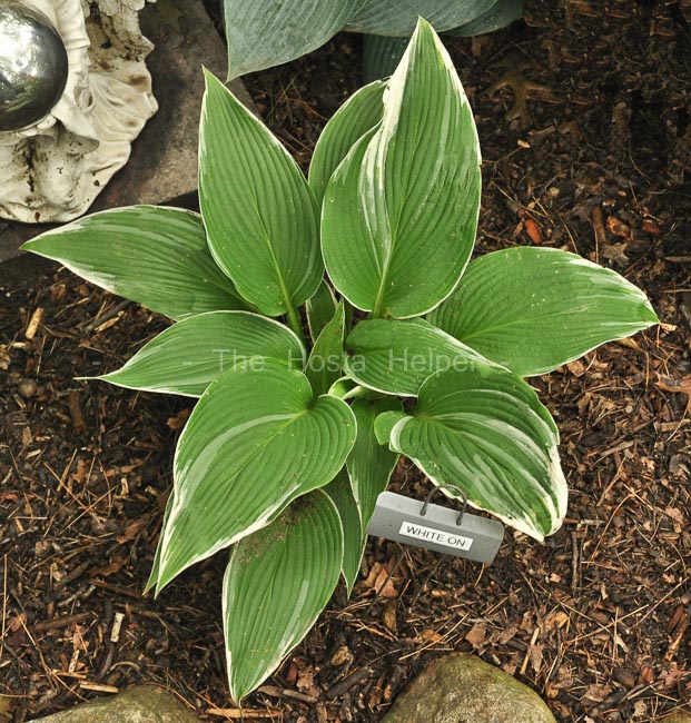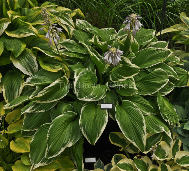 Kevin Walek (Hosta Registrar) in 2009. Its leaves are green with an irregular white marginal variegation. The large