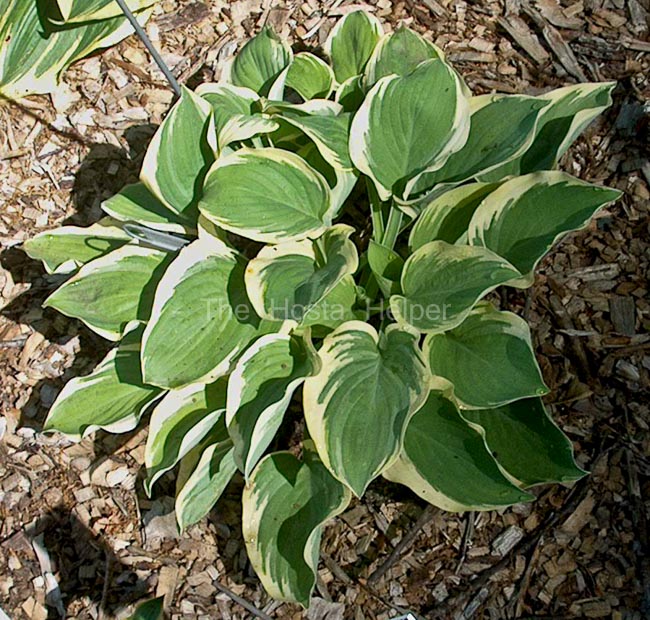 This seedling of H. 'Sea Prize' was registered by Jim Dishon of Michigan in 1994. This medium size (16 inches high) mound of slightly cupped, wavy foliage with above average substance. Purple flowers bloom in July.