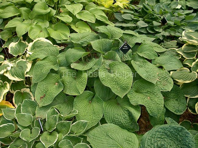 This H. 'Sieboldiana' seedling was developed by Henry Ross and registered in the name of his Gardenview Horticultural Park at Strongsville, Ohio in 1981. Typical of its type, this plant forms a large size (22 inches high) mound of heavily corrugated foliage with a thick substance.