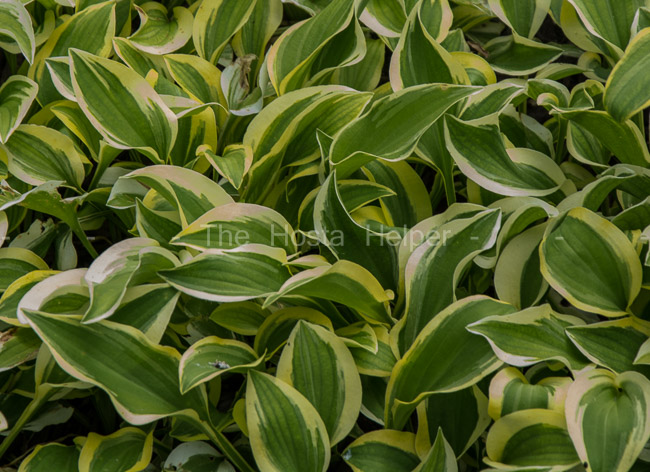 This hybrid of H. 'Gaijin' was registered by Randy Goodwin of Indiana in 2009. It is a medium size (14 inches high by 36 inches wide) hosta with medium blue-green foliage. The leaves are moderately corrugated, nearly round, slightly twisted, deeply cupped and slightly shiny on top. Tubular, striped flowers with translucent edges bloom in August on scapes 30 to 40 inches tall.