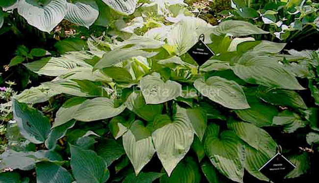 Peter Ruh of Ohio registered this cultivar on behalf of the originator, Herbert A. Zager of Iowa in 1987. It forms a large size mound of gold centered leaves with green margins that fade to gold as the season progresses.