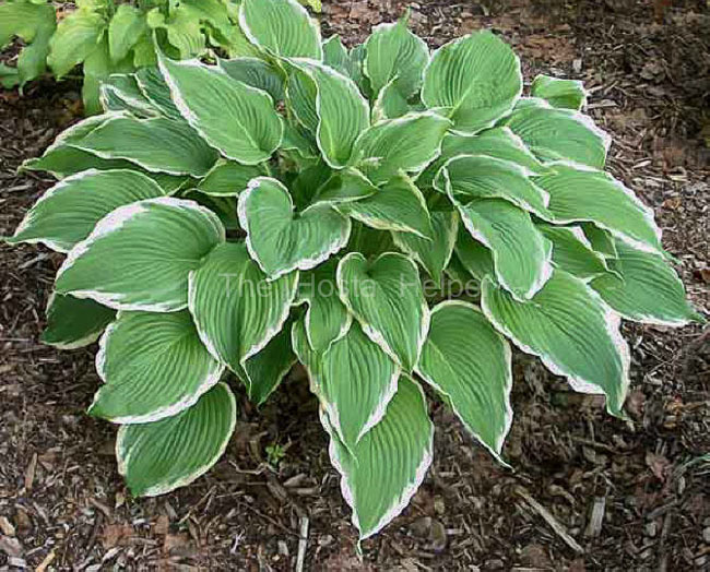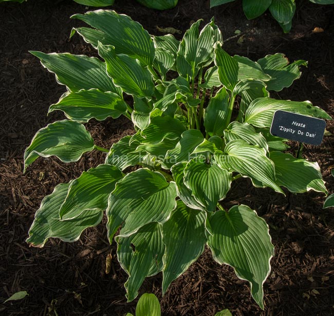 This sport of H. 'Abba Dabba Do' was registered by Walters Gardens, Inc. of Michigan in 2000. It has ovate shaped leaves that are very wavy and smooth textured. In July, it produces pale lavender flowers.