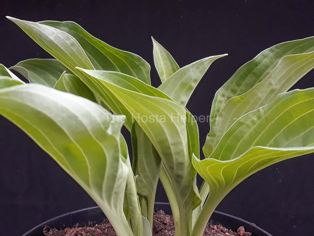 This non-registered hosta of unidentified background is from Lehel Kósa of Sweden. It is a medium size hosta with grey-green foliage that has a slightly wavy margin. The flowers are lavender in color.