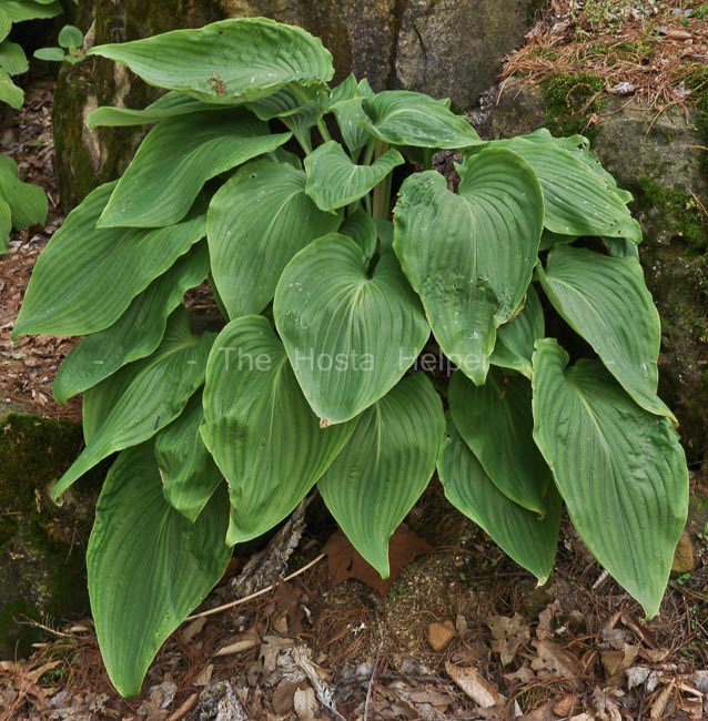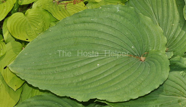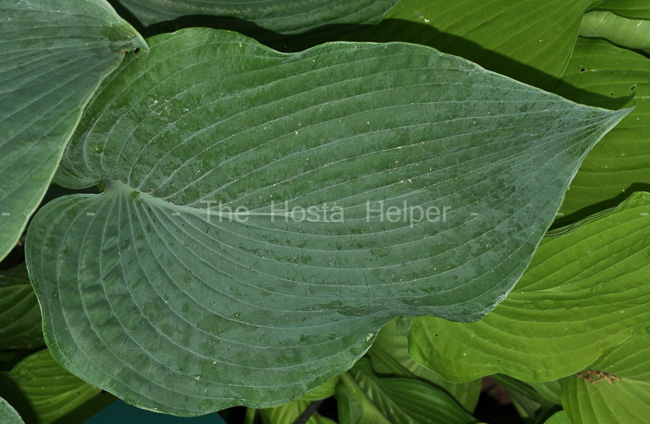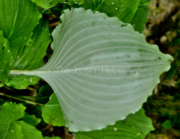 The Genus Hosta by W. George Schmid (1991) says the name in Greek translates to "hypo = back, beneath and leucon = white color." This plants gray-green leaves have long points at the tips and are whitish colored on the bottoms.