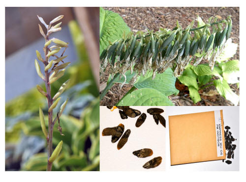 rows of flat, single winged seeds. Hosta species and cultivars vary