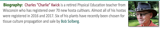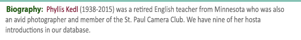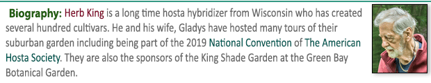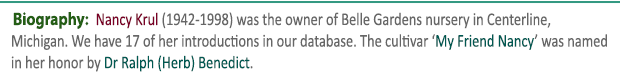So far, we have 413 biographies but we are always looking to expand these listings and to keep them up to date. So, if you would like to recommend someone for inclusion or have a new or improved picture of someone already included please EMAIL US with their name and a brief description of his or her contributions  the World of Hostas. Thanks.