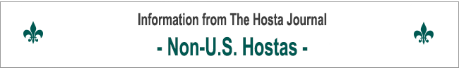 3) An article by W. George Schmid in The Hosta Journal (1985 Vol. 16) states that, "In England Heinz Klose obtained a number of H. x tardiana plants after Eric Smith left Hadspen House nursery. He is also actively selecting and propagating H. sieboldiana 'Semperaurea' seedlings...Named by him are several hybrid seedlings: H. 'Goldpfeil' ('Gold Arrow'), H. 'Weisse Glocke' ('White Bell'), and H. 'Zitronenfalter' ('Lemon Butterfly')...special cultivars with H. sieboldiana lines are: H. 'Blauglut' ('Blue Glow') and H. 'Blaue Wolke' ('Blue Cloud') which reminds one of H. 'Blue Heaven'...with his H. x tardiana...has named one H. 'Irische See' ('Irish Sea')...H. 'Nordatlantic' ('North Atlantic')..."